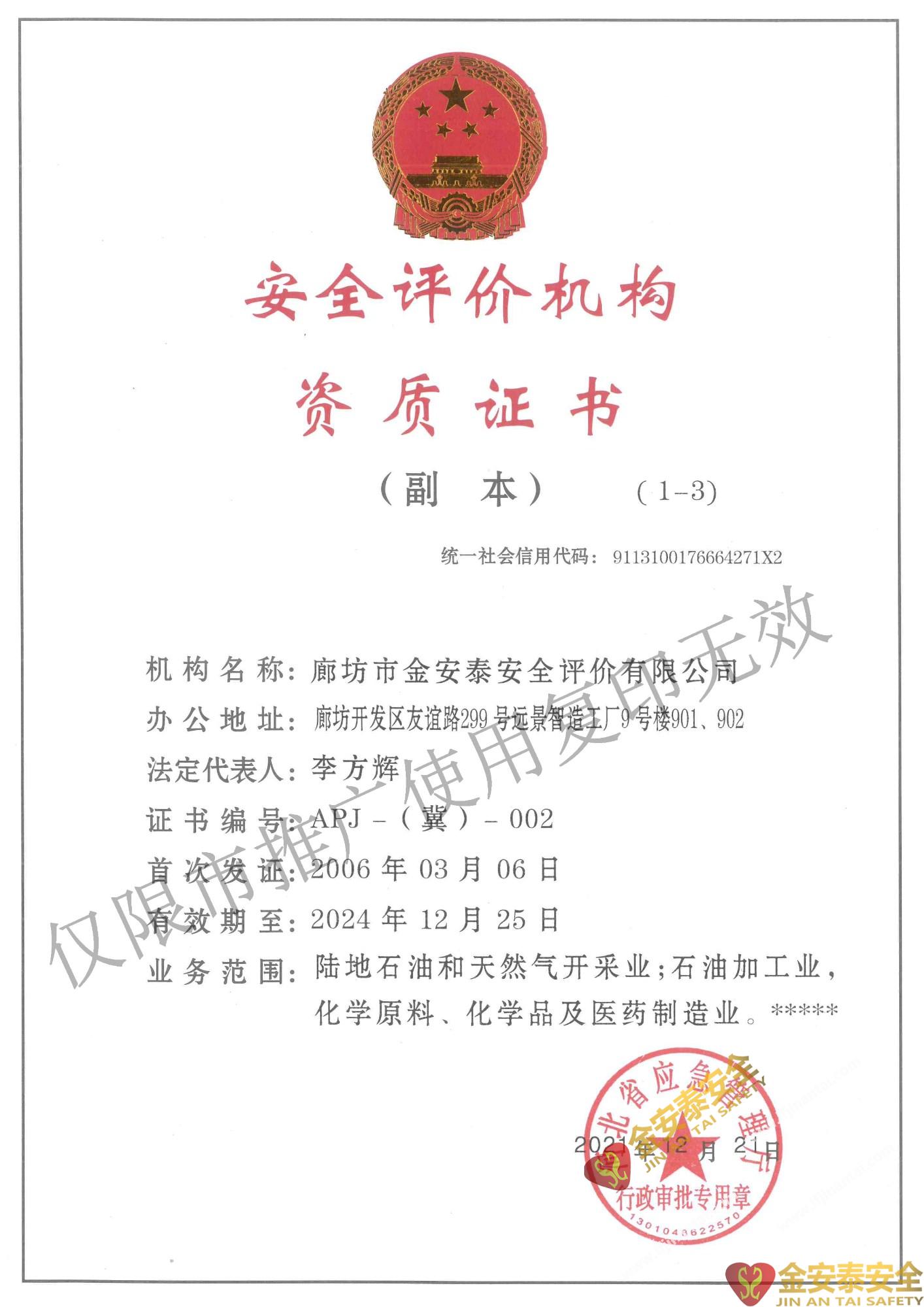 公 司:廊坊市金安泰安全評(píng)價(jià)有限公司